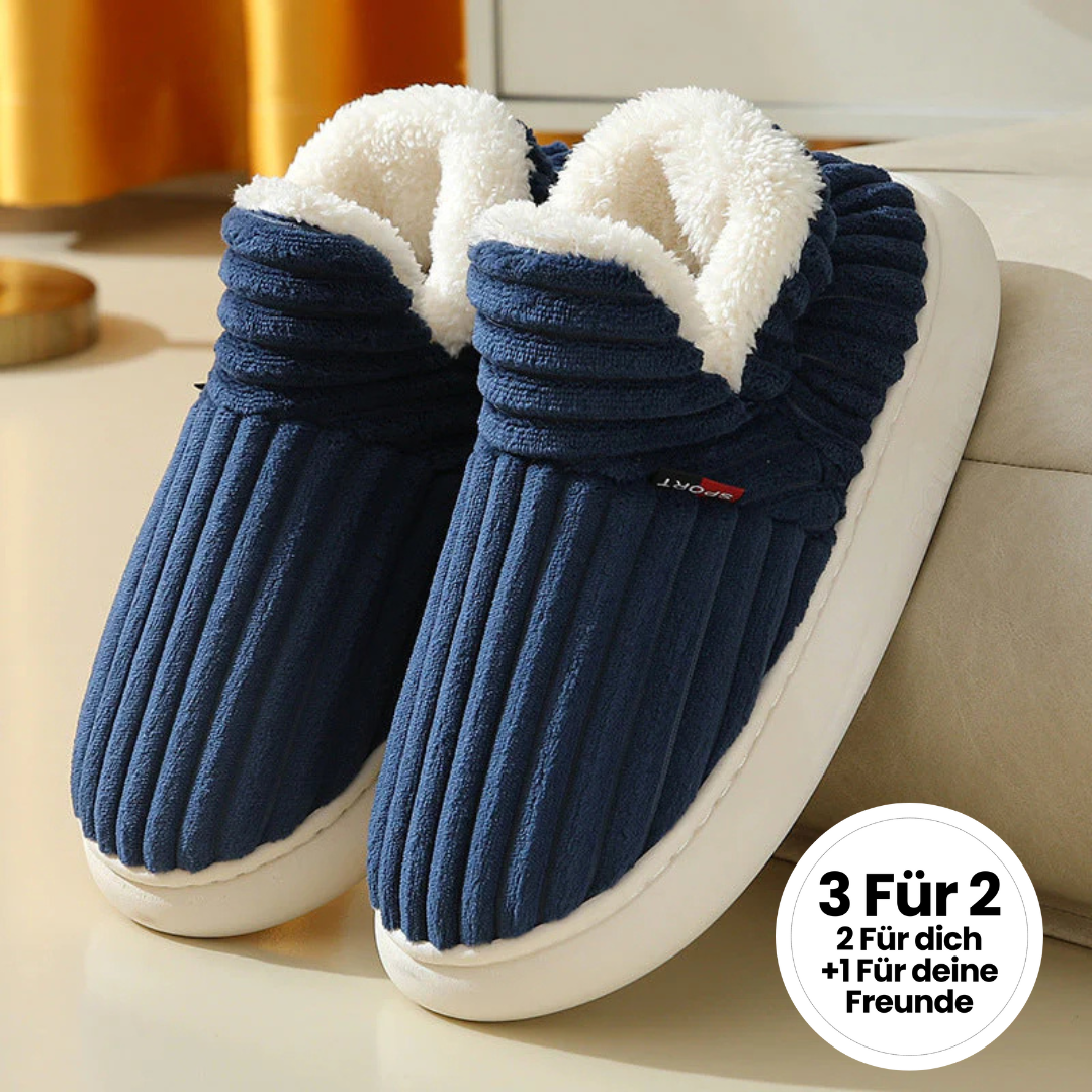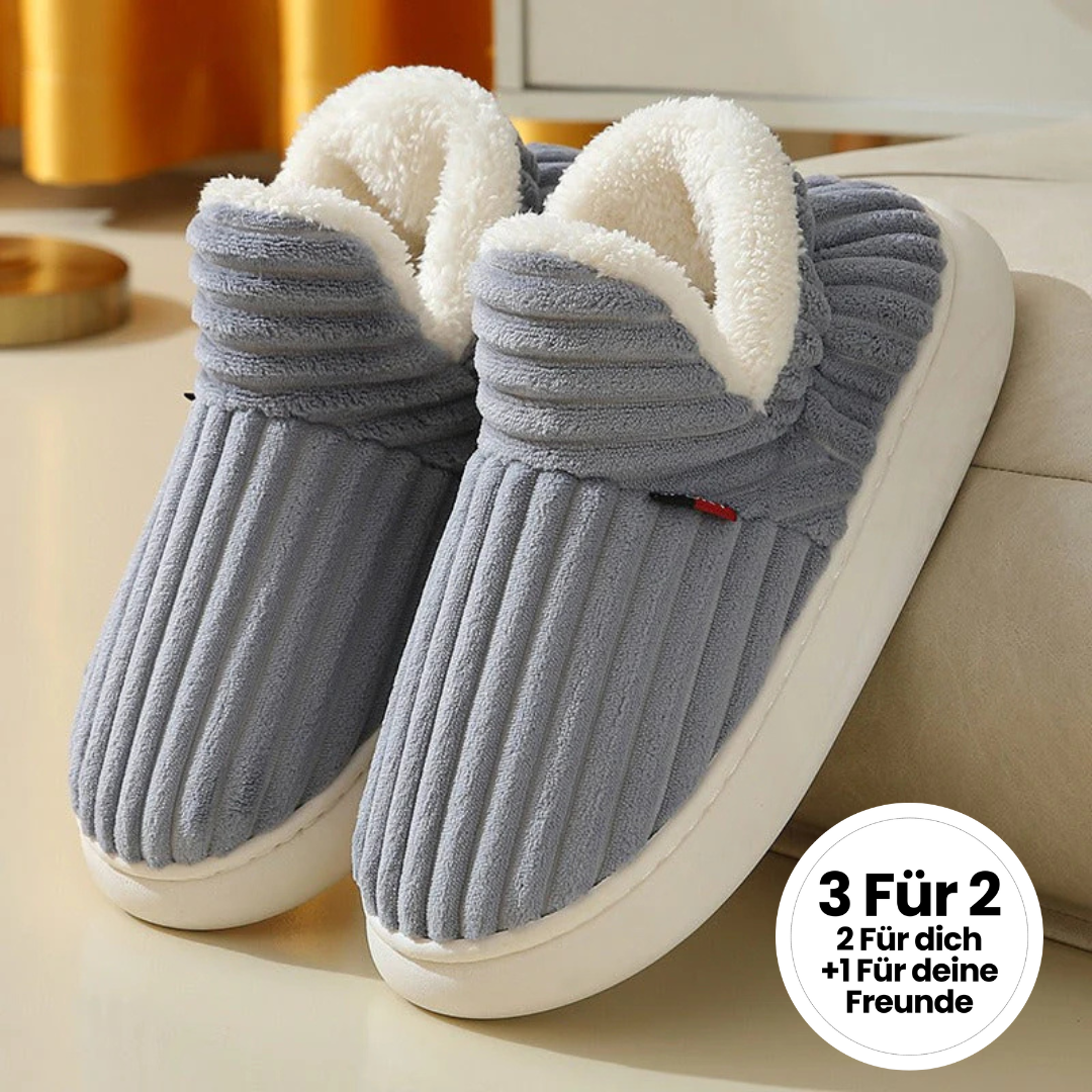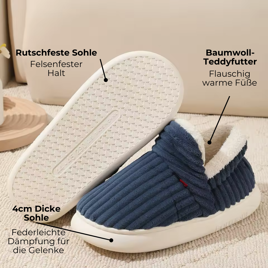 Verabschiede dich von Drittanbieter Hausschuhen, Pantoffeln und Schlappen, die schmerzende Füße, eiszapfenkalte Zehen, nerviges Rutschen und quälende Gelenkschmerzen verursachen.