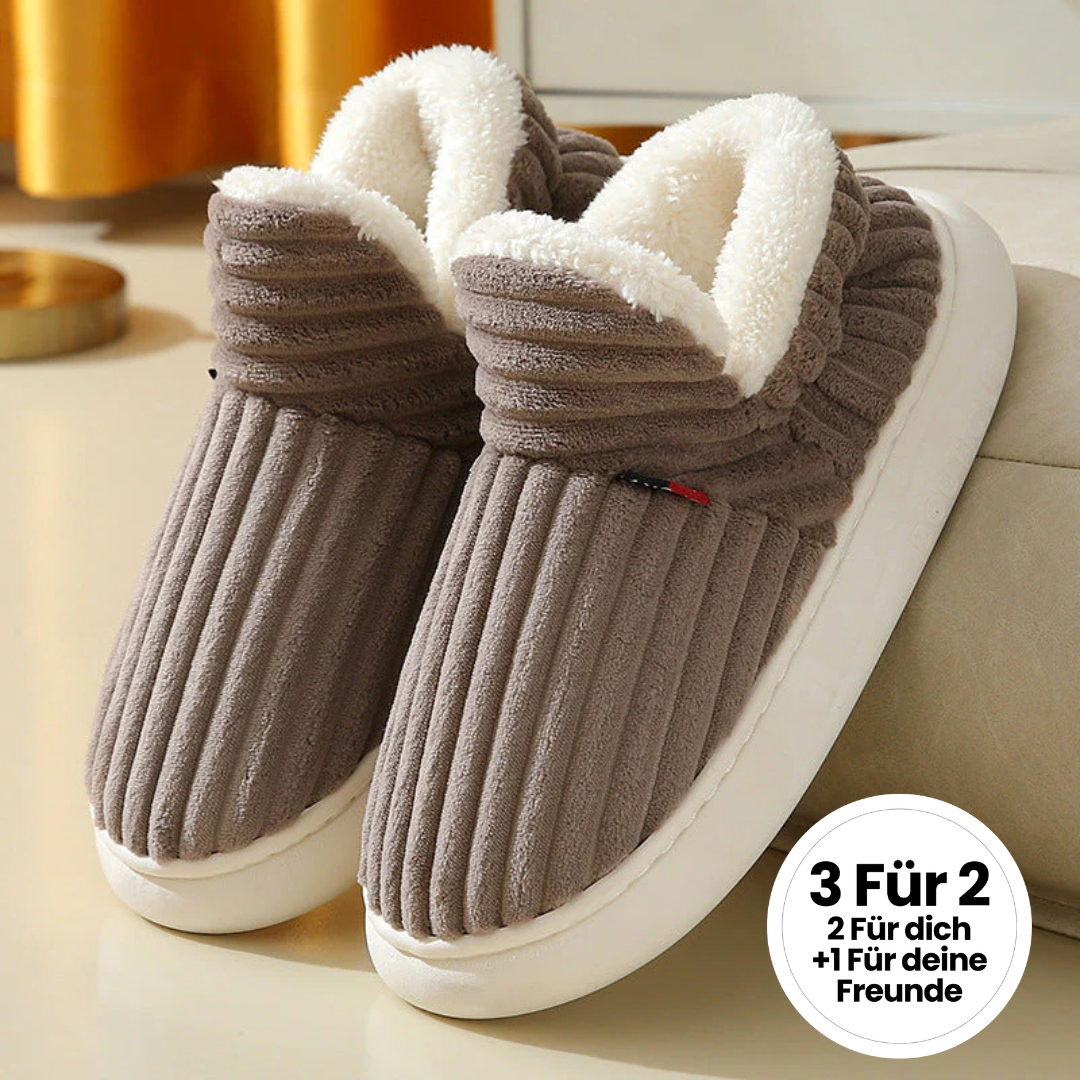 Keine offene Ferse, kein kaltes Gefühl – nur perfekter Halt und weiche Umhüllung für rundum gemütliche Schritte.