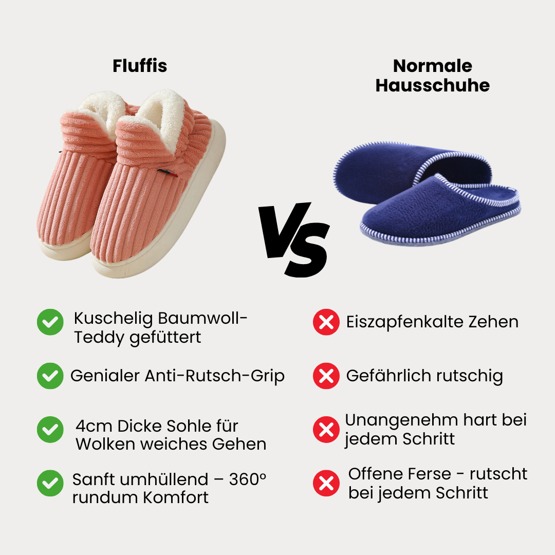 Mit den Fluffis bekommst du in Nullkommanichts flauschig warme Füße, eine federweiche Polsterung und das Gefühl, auf Wolken zu gehen – purer Komfort garantiert!